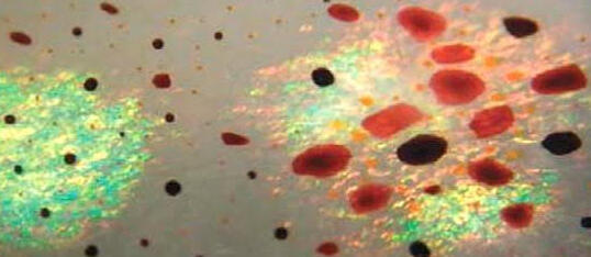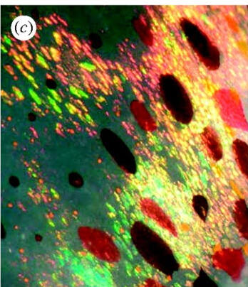 - Red and yellow chromatophores transmit much of the incoming light and play an important role in modulating iridescence.